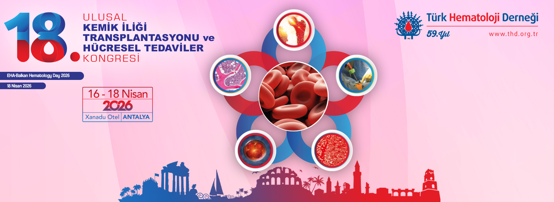 18. Ulusal Kemik İliği Transplantasyonu ve Hücresel Tedaviler Kongresi bu sene 16-18 Nisan 2026 tarihleri arasında Xanadu Otel, Antalya’da düzenlenecektir.